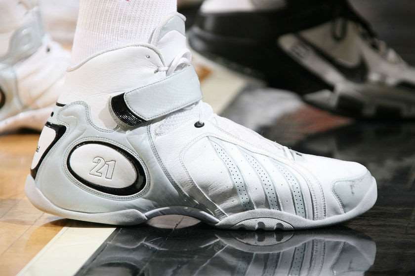 上期讲到阿迪达斯在2003-2004年集齐了麦迪、阿里纳斯、比卢普斯、邓肯、加内特,五虎上将,并且在随后几年风生水起,包揽了联盟众多个人奖项,五虎的鞋子也卖的相当火爆,至2006年,达到了阿迪篮球鞋的巅峰,其篮球鞋阵容已经可以正面和耐克刚一下了。
